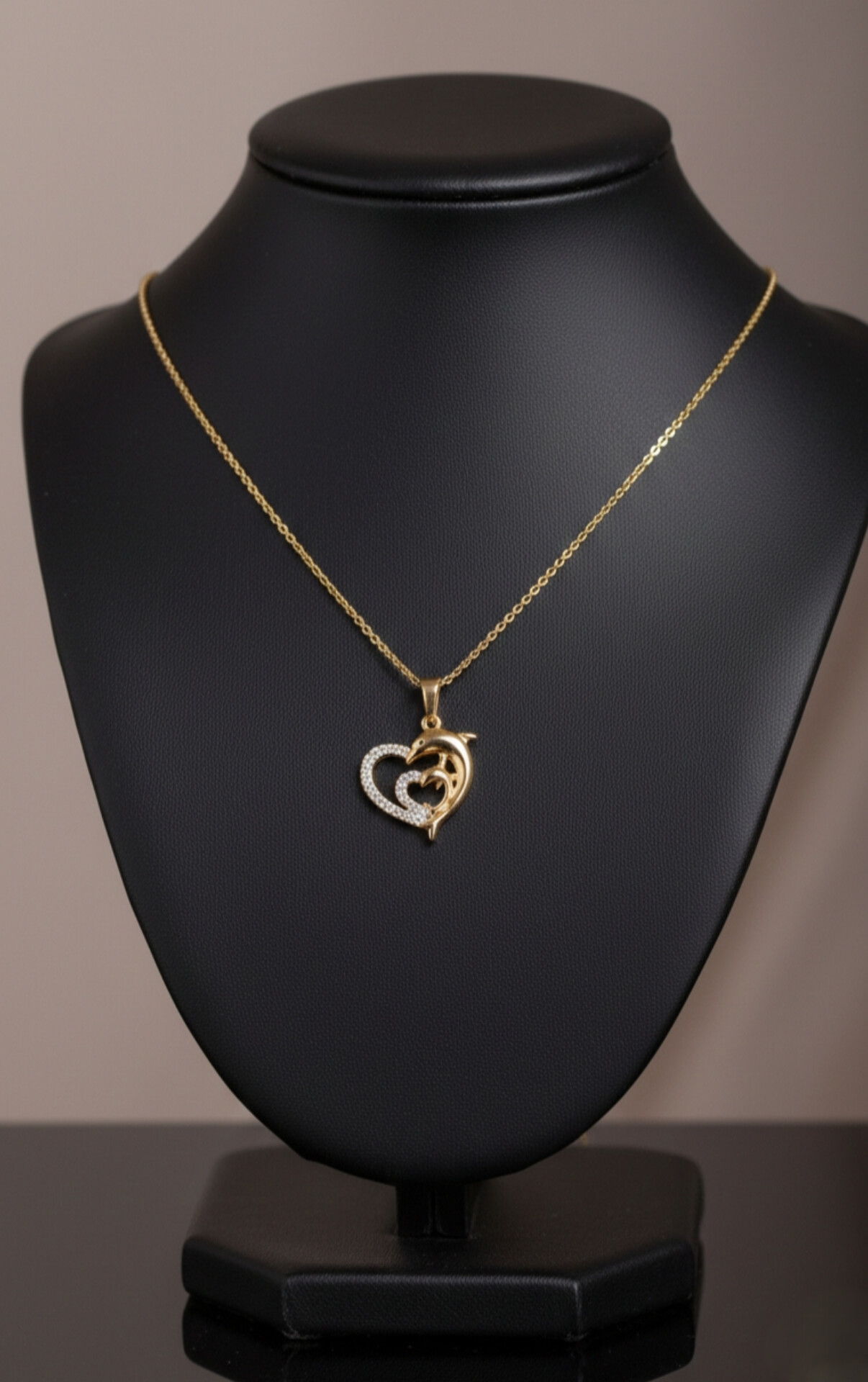 گردنبند ژوپینگ طرح قلب دلفینی با زنجیر طلایی براق