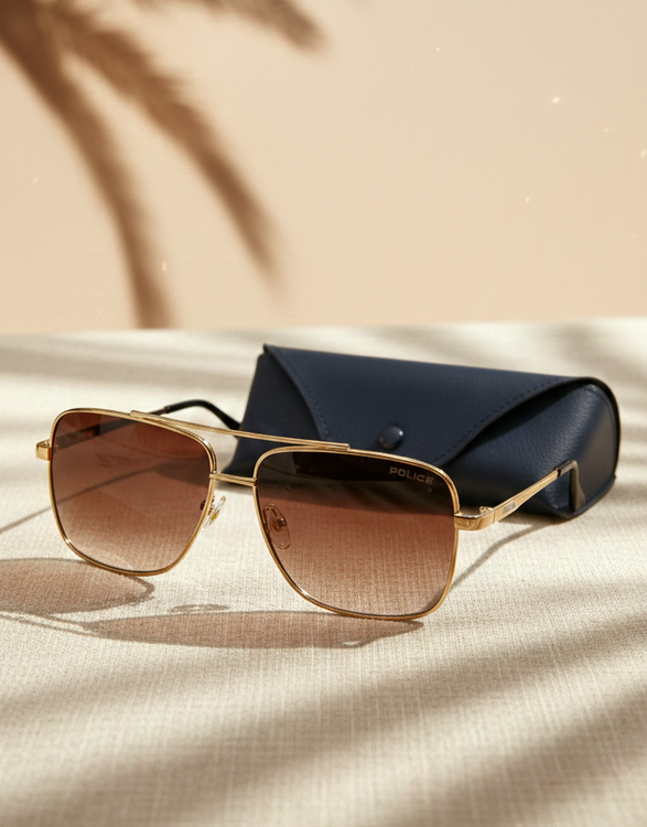 عینک آفتابی مردانه پلیس فریم فلزی طلایی با شیشه قهوهای فید
