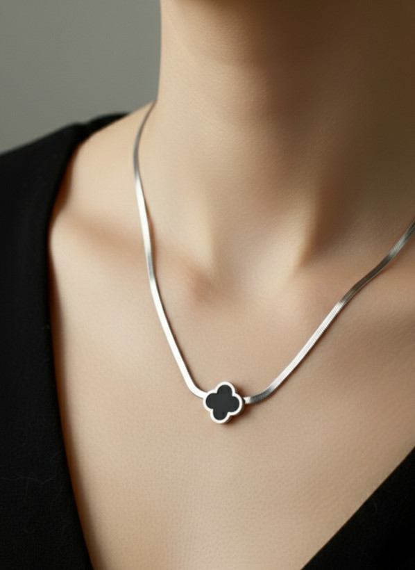در بین گردنبندهای طرح ونکلیف، این مدل بهدلیل استفاده از زنجیر ماری، ظاهر یکدستتر و ایستایی بهتری روی گردن دارد. ثابت بودن پلاک باعث میشود گردنبند هنگام حرکت پیچ نخورده یا نامتقارن دیده نشود. ترکیب رنگ نقرهای زنجیر با پلاک مشکی، آن را از مدلهای کاملاً براق بازار متمایز میکند و برای افرادی که ظاهر متعادلتر را ترجیح میدهند گزینه مناسبی است.
