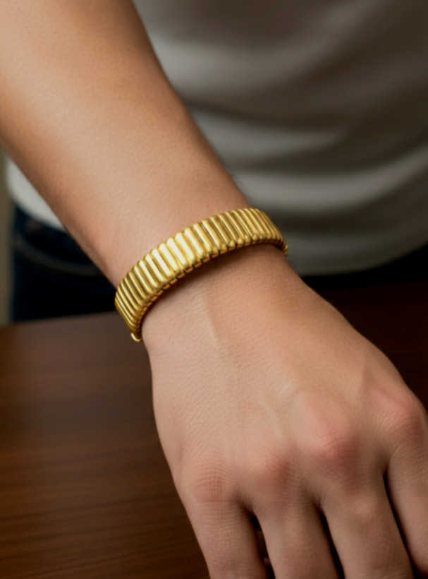 در مقایسه با بنگلهای خشک و غیرقابل تنظیم، طراحی منعطف این مدل استفاده راحتتری فراهم میکند. طرح حصیری باعث شده سطح دستبند یکنواخت نباشد و جلوهای متفاوت نسبت به مدلهای صاف داشته باشد. طول ۱۸ سانتیمتری و خاصیت فیکسشدن روی مچ، آن را برای طیف وسیعی از اندازههای مچ مناسب میکند.
