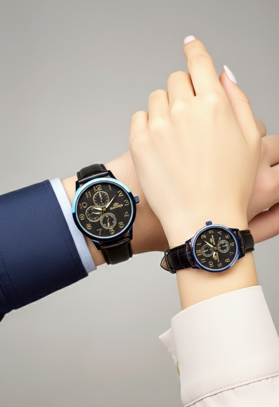 اگر بهدنبال ست ساعتی هستید که علاوه بر هماهنگی زنانه و مردانه، جزئیات ظریف مثل قاب سرمهای هم در طراحی آن لحاظ شده باشد، این مدل انتخاب مناسبی است. این تفاوت رنگی کوچک باعث میشود ساعت در استفاده روزمره یا هدیهدادن جلوه متفاوتتری نسبت به مدلهای کاملاً مشکی داشته باشد.
