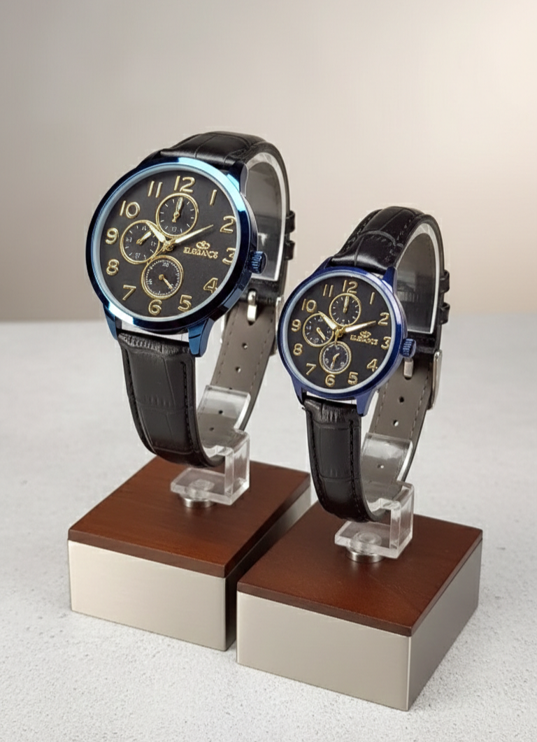 اگر بهدنبال ست ساعتی هستید که علاوه بر هماهنگی زنانه و مردانه، جزئیات ظریف مثل قاب سرمهای هم در طراحی آن لحاظ شده باشد، این مدل انتخاب مناسبی است. این تفاوت رنگی کوچک باعث میشود ساعت در استفاده روزمره یا هدیهدادن جلوه متفاوتتری نسبت به مدلهای کاملاً مشکی داشته باشد.
