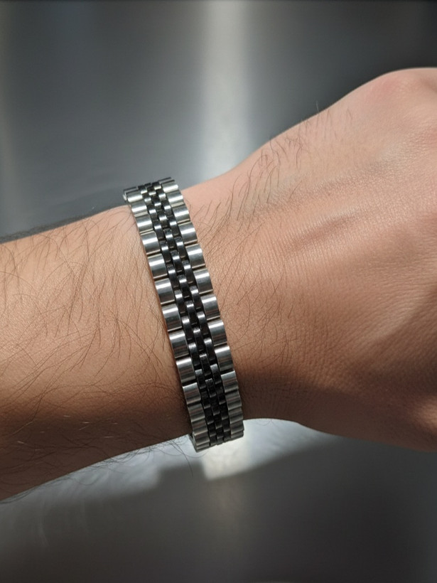 این دستبند با طول ۲۲ سانتیمتر، در دو عرض ۱ و ۱.۲ سانتیمتر عرضه میشود تا متناسب با سلیقه و سایز مچ شما باشد.