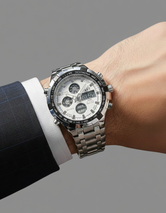 ساعت مردانه FAST TIME با طراحی جذاب ترکیبی آنالوگ و دیجیتال، انتخابی هوشمندانه برای مردانی است که به دنبال یک ساعت با قابلیتهای متنوع و ظاهری مدرن هستند.