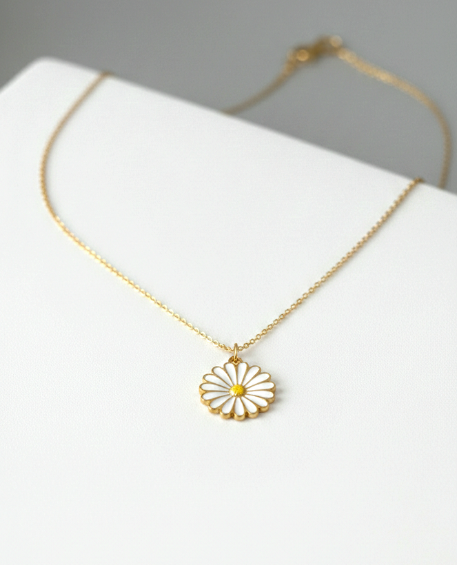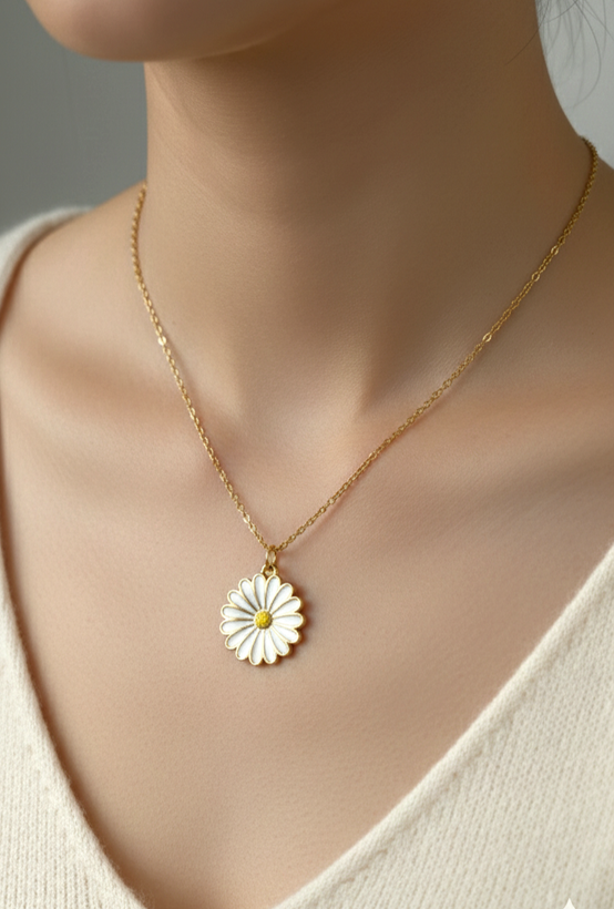 در گردنبندهای طرح گل، اغلب یا پلاک بیش از حد بزرگ است یا جزئیات آن از فاصله دور دیده نمیشود. این مدل با قطر ۱۸ میلیمتری، اندازهای استاندارد دارد که روی گردن کاملاً مشخص است اما سنگین یا غالب نیست. ترکیب رنگ سفید و طلایی نیز باعث میشود بهراحتی با استایلهای روشن و تیره هماهنگ شود. قفل خرچنگی هم اتصال مطمئنتری نسبت به قفلهای ساده فراهم میکند.