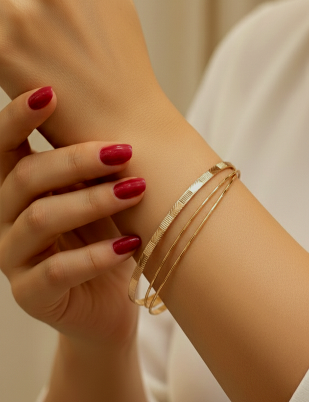 مناسب استفاده روزمره، مهمانی و ست شدن با دستبند یا ساعت طلایی. این مدل برای افرادی که استایل چند النگویی را میپسندند اما نظم و یکدستی میخواهند انتخاب مناسبی است.