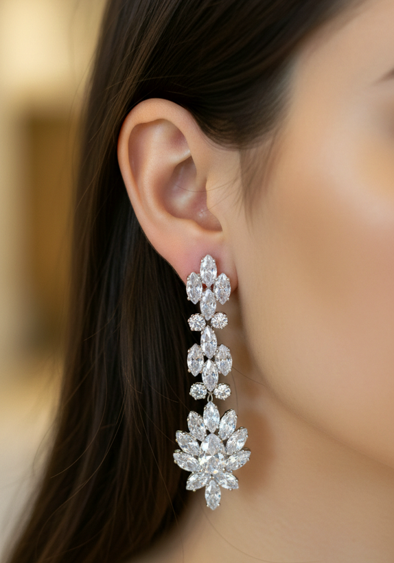 این گوشواره در دسته مدلهای آویز بلند مجلسی قرار میگیرد که تمرکز آن روی درخشش بصری و جلوه روی گوش است. برخلاف مدلهای ساده میخی، این طراحی چند ردیفه باعث حرکت نرم گوشواره هنگام راه رفتن میشود که حس لوکستری منتقل میکند.