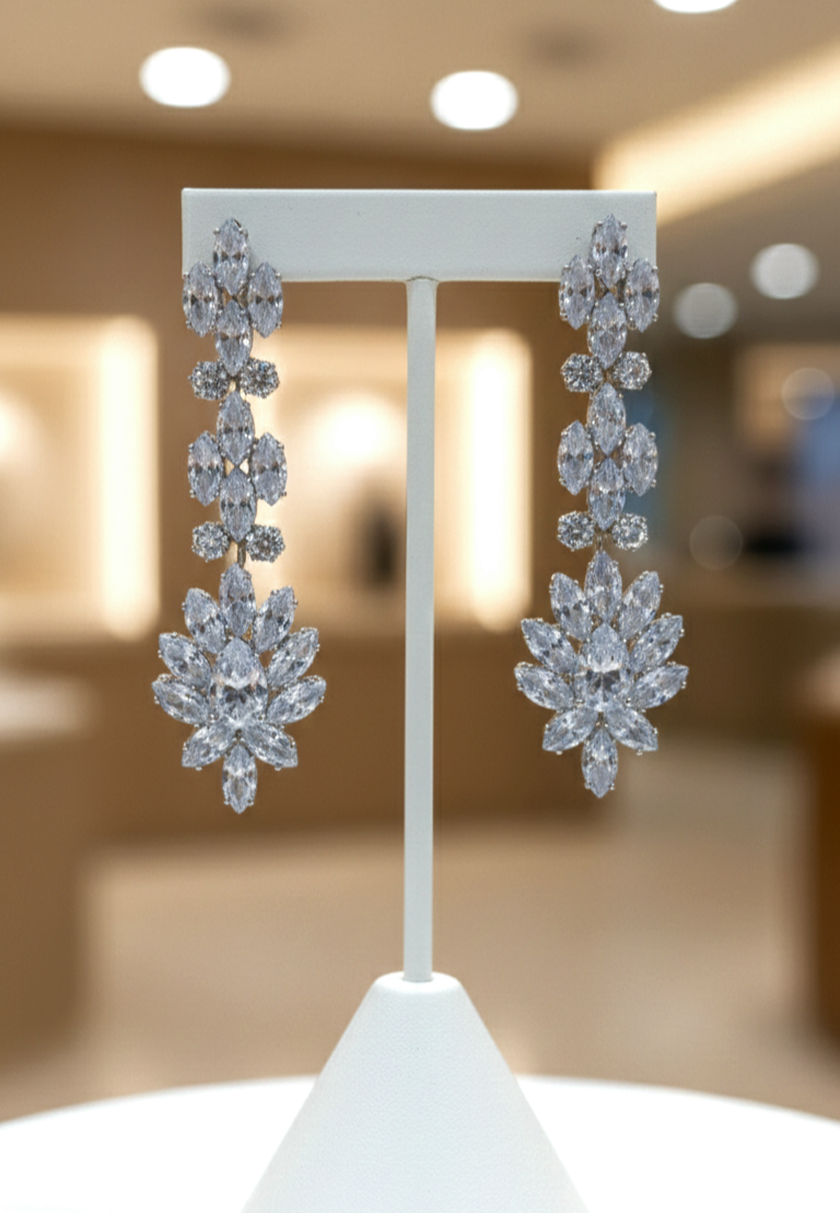 این گوشواره در دسته مدلهای آویز بلند مجلسی قرار میگیرد که تمرکز آن روی درخشش بصری و جلوه روی گوش است. برخلاف مدلهای ساده میخی، این طراحی چند ردیفه باعث حرکت نرم گوشواره هنگام راه رفتن میشود که حس لوکستری منتقل میکند.