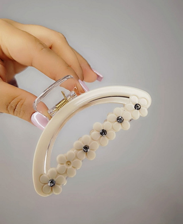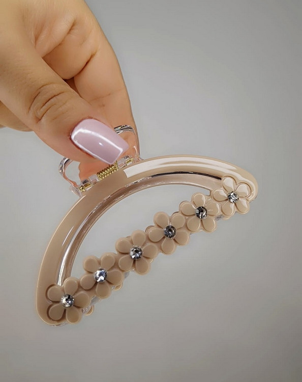 کلیپس پلیمر رزین با طرح گل و نگین، یک اکسسوری زیبا و خاص است که جلوهای ظریف و چشمنواز به موهای شما میبخشد.