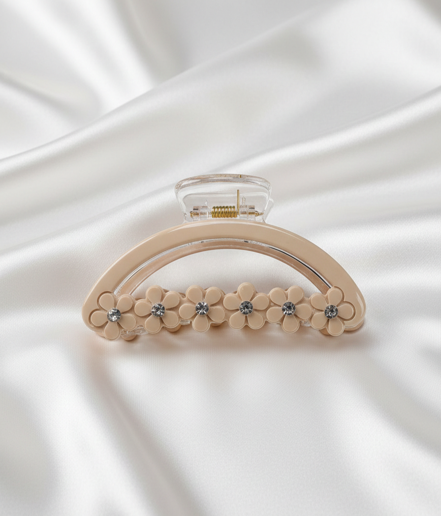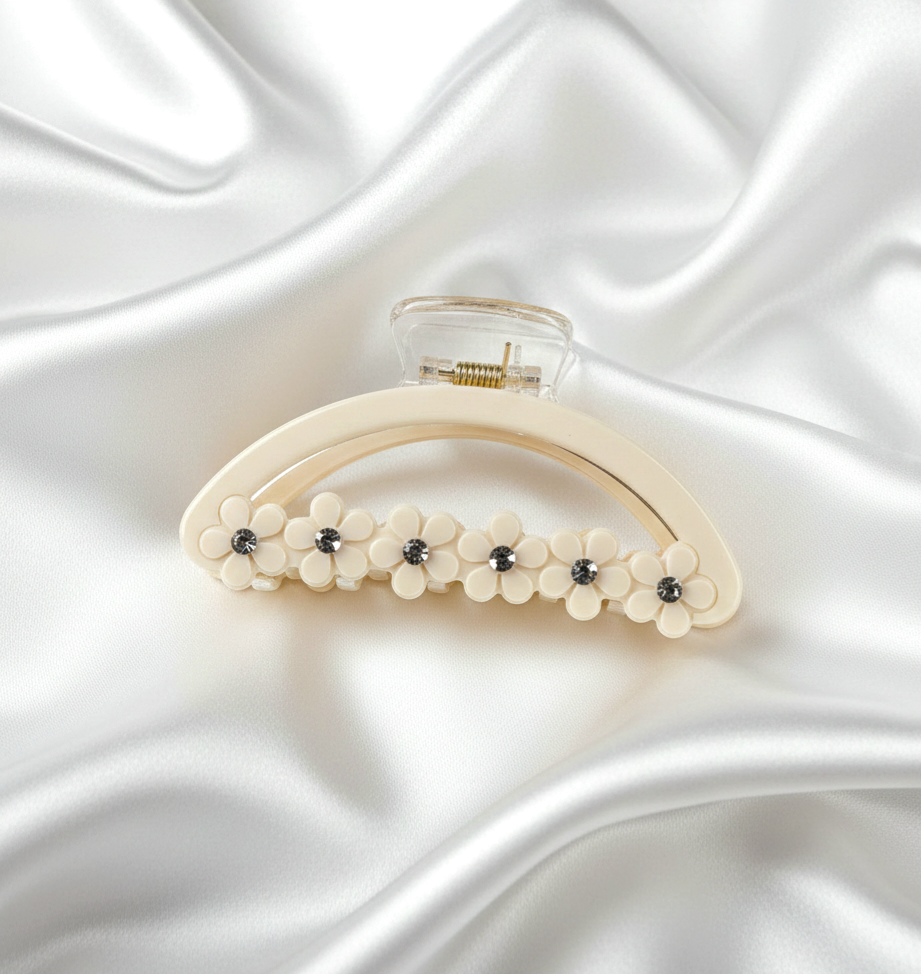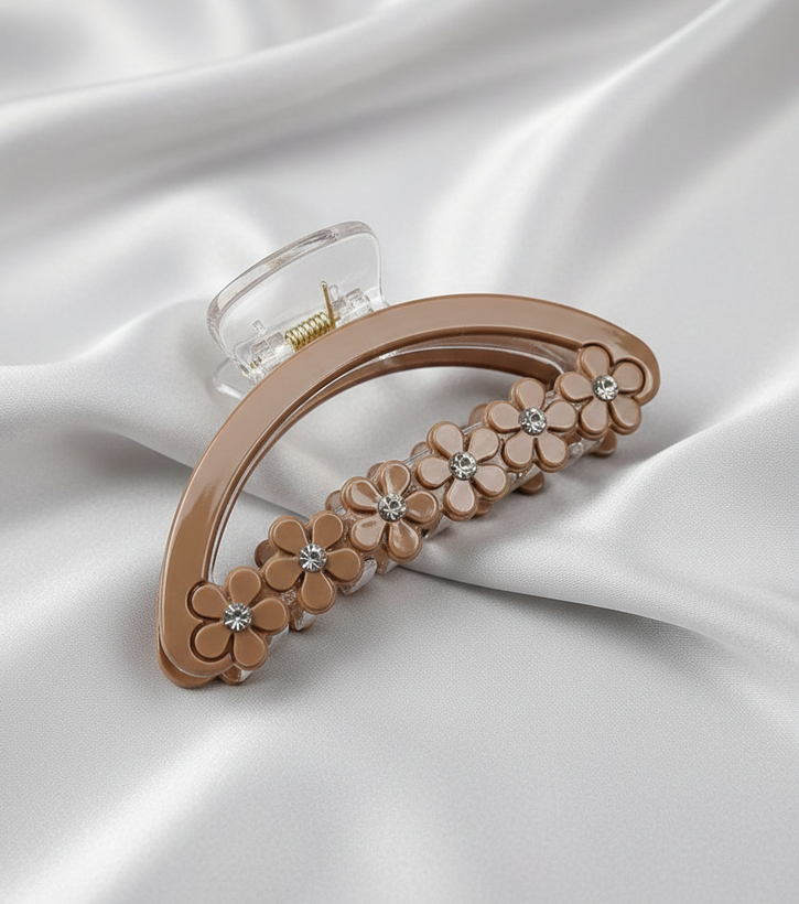 کلیپس پلیمر رزین با طرح گل و نگین، یک اکسسوری زیبا و خاص است که جلوهای ظریف و چشمنواز به موهای شما میبخشد.