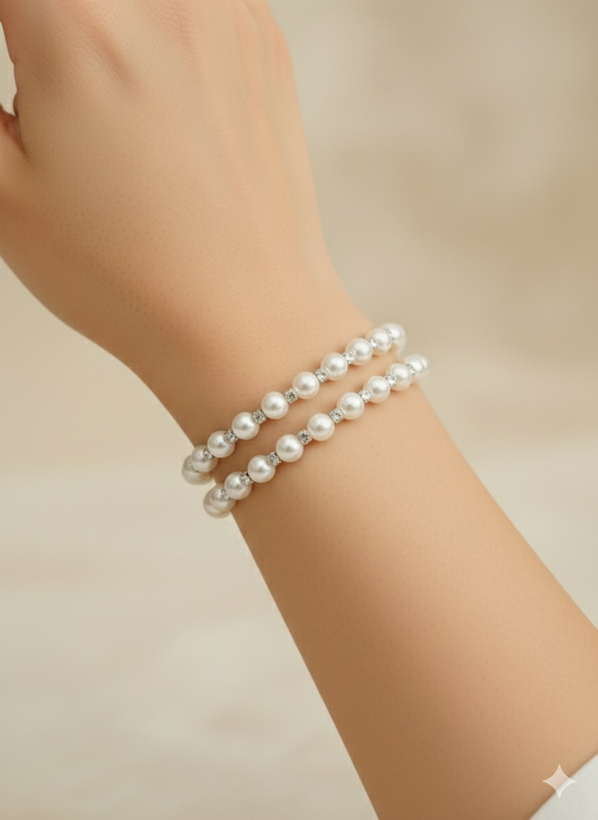 دستبند پابند فنری مرواریدی نگیندار دو دور منعطف