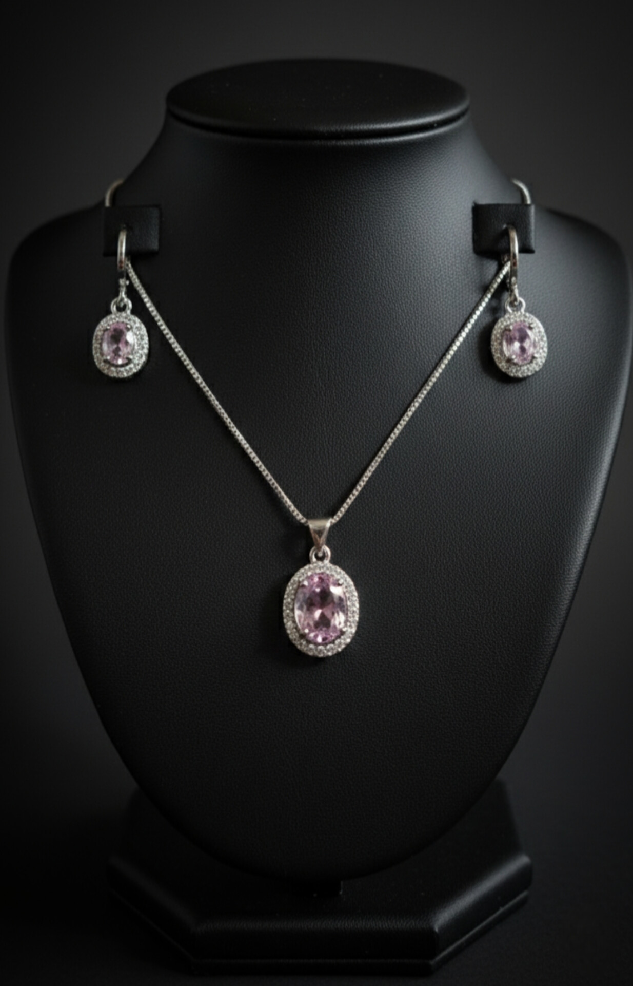 تفاوت اصلی این مدل نسبت به نمونههای رایج بازار، فرم بیضی پلاک است که ظاهر کار را کشیدهتر و متفاوتتر نشان میدهد. نگین صورتی جلوه ملایمتری نسبت به رنگهای تیره ایجاد میکند و برای استایلهای ظریف انتخاب محبوبی محسوب میشود. وزن سبک مجموعه و قفل کلیپسی گوشواره، استفاده روزانه را راحت و بدون فشار روی گوش ممکن کرده است.