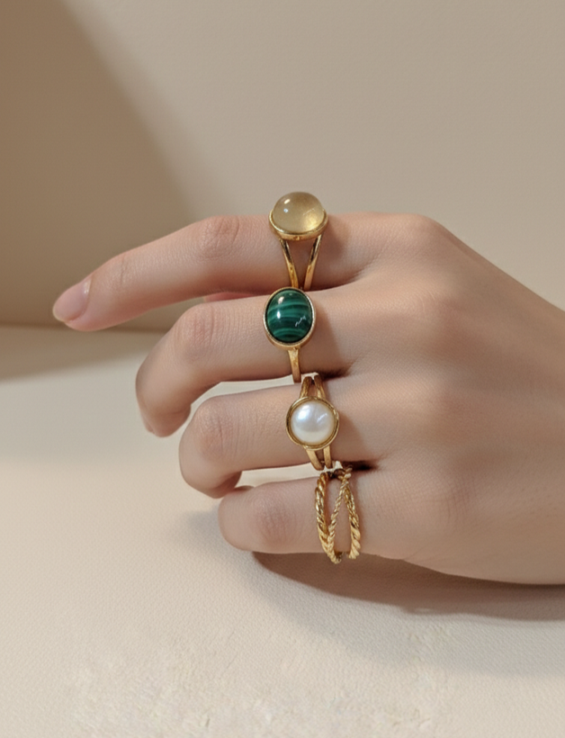مزیت اصلی این پک، تنوع طراحی در یک مجموعه واحد است. وجود سه انگشتر با نگین درشت (دو کرم و یک سبز رگهدار) در کنار مدل نگین ریز و حلقههای مارپیچ، دست شما را برای ست کردن باز میگذارد. وزن سبک و فرم ظریف باعث شده برای استفاده روزمره مناسب باشد. در مقایسه با پکهای تکمدل بازار، این مجموعه از نظر تنوع بصری انتخاب کاملتری محسوب میشود.
