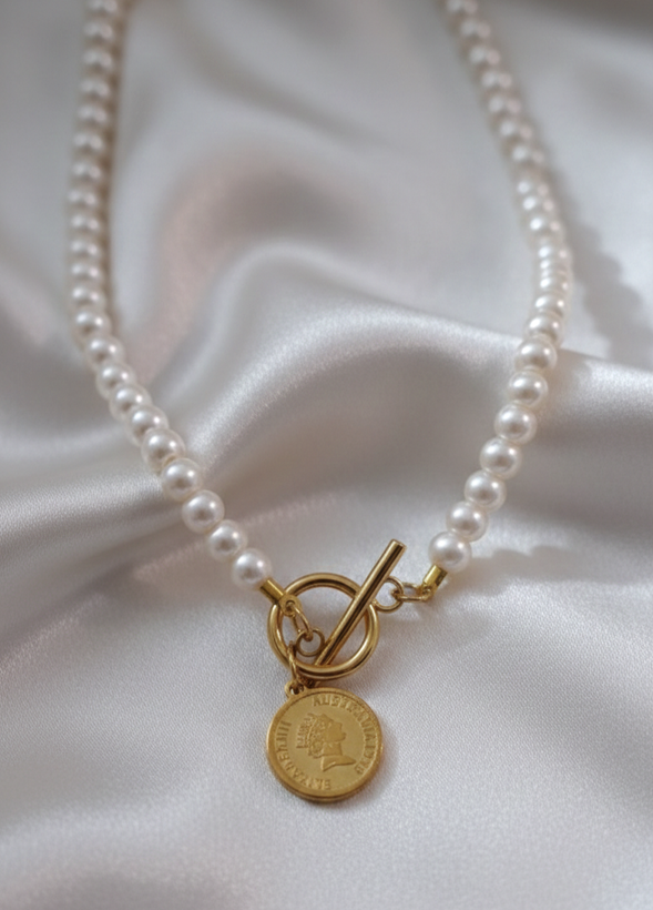 گردنبند مرواریدی پلاک الیزابت