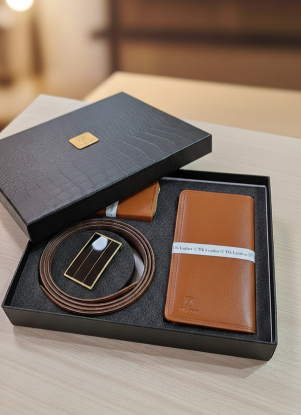 با یک انتخاب، سه قلم چرمی کاربردی دریافت میکنید؛ متریال چرم طبیعی، رنگ پرطرفدار عسلی و ارائه در هاردباکس شکیل، این ست را به گزینهای مناسب برای هدیه و مصرف روزمره تبدیل کرده است.