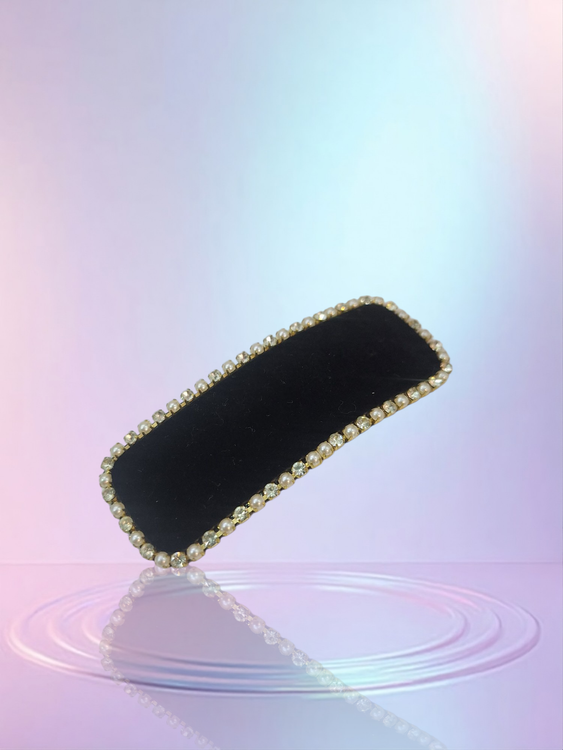 ترکیب بافت نرم مخمل، درخشش نگینها و وزن سبک آن، این گیره را به گزینهای مناسب برای استایلهای روزمره و مهمانیهای رسمی تبدیل میکند.