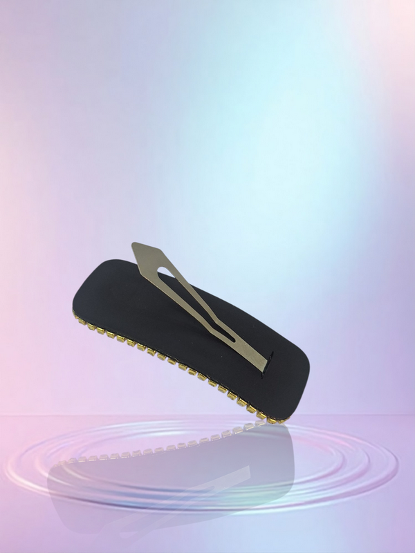 بدنهی استیل مقاوم با روکش مخمل مشکی و تزئین نگینهای ریز به رنگهای سفید و طلایی، جلوهای خاص و لوکس به این گیره داده است.