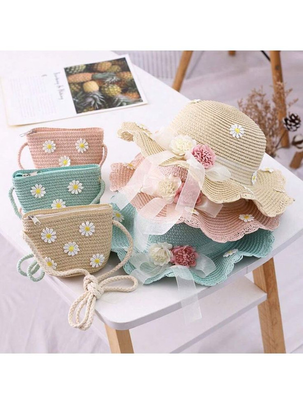 ست کیف و کلاه حصیری دخترانه با طراحی فانتزی و الهامگرفته از طبیعت، انتخابی جذاب برای دختران خوشسلیقه است.