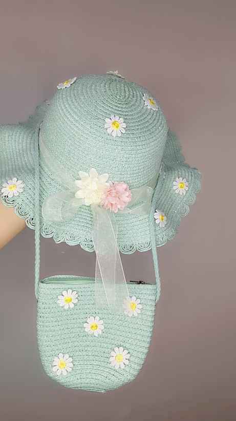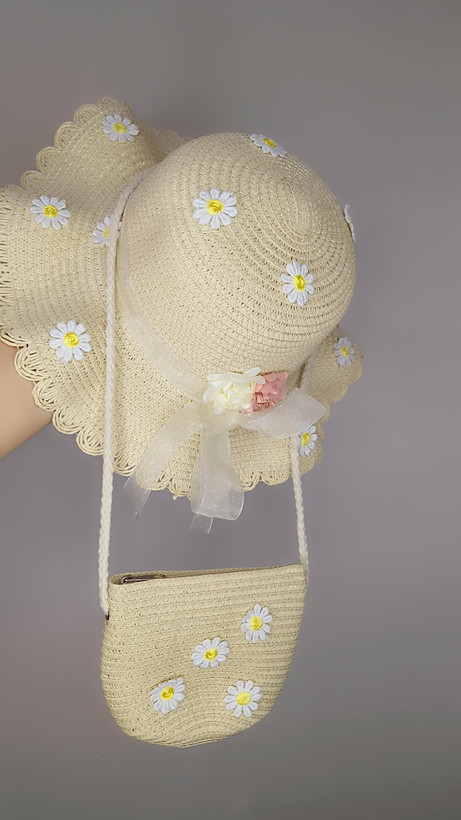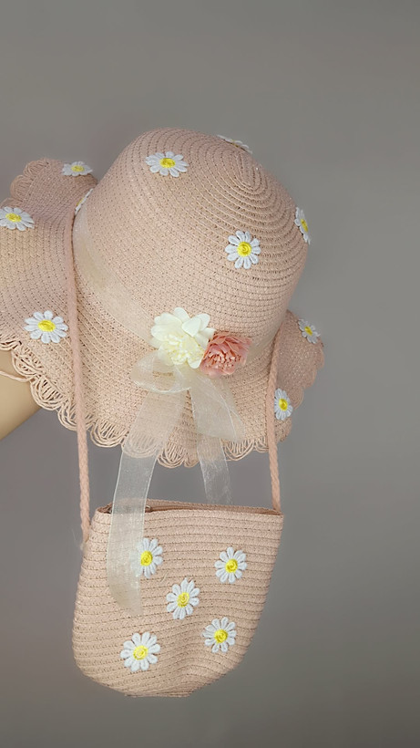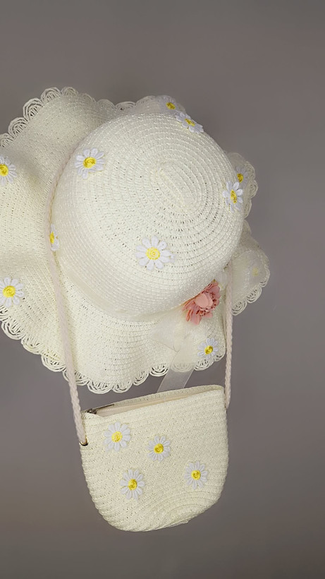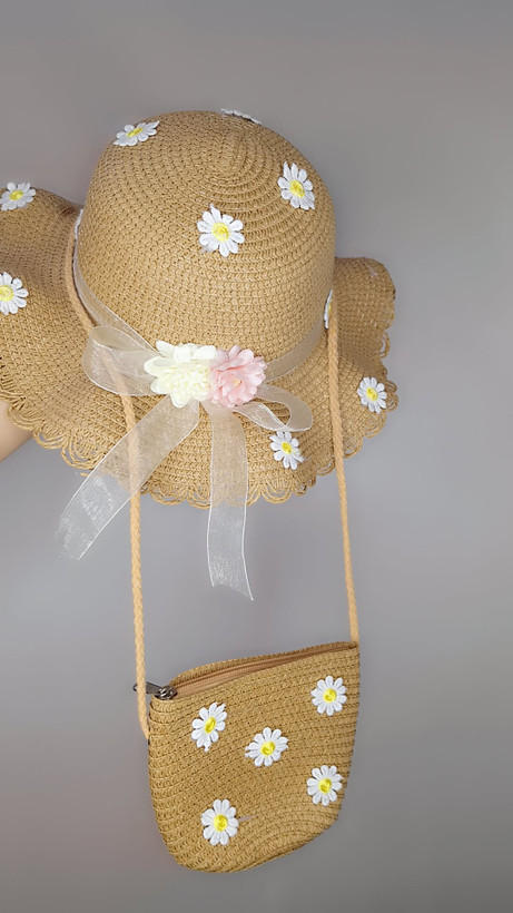 ست کیف و کلاه حصیری دخترانه با طراحی فانتزی و الهامگرفته از طبیعت، انتخابی جذاب برای دختران خوشسلیقه است.