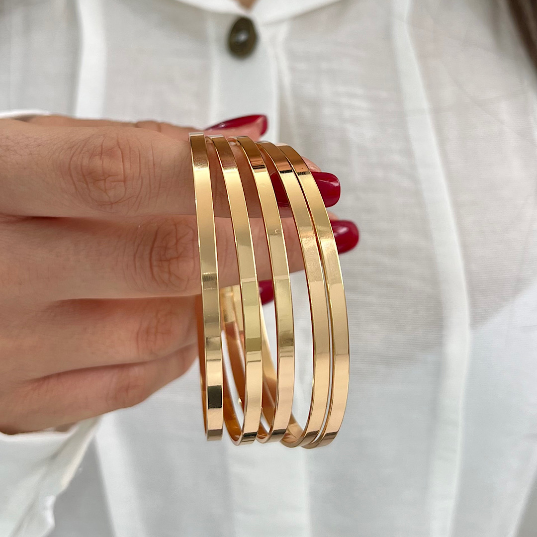 النگو آینه‌ای استیل برند YSX – رنگ طلایی براق (ست چندتایی)