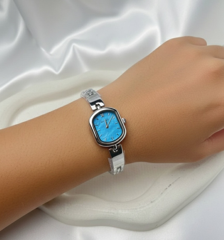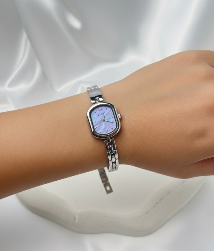 ساعت استیل زنانه طرح گوچی با صفحه هولوگرامی