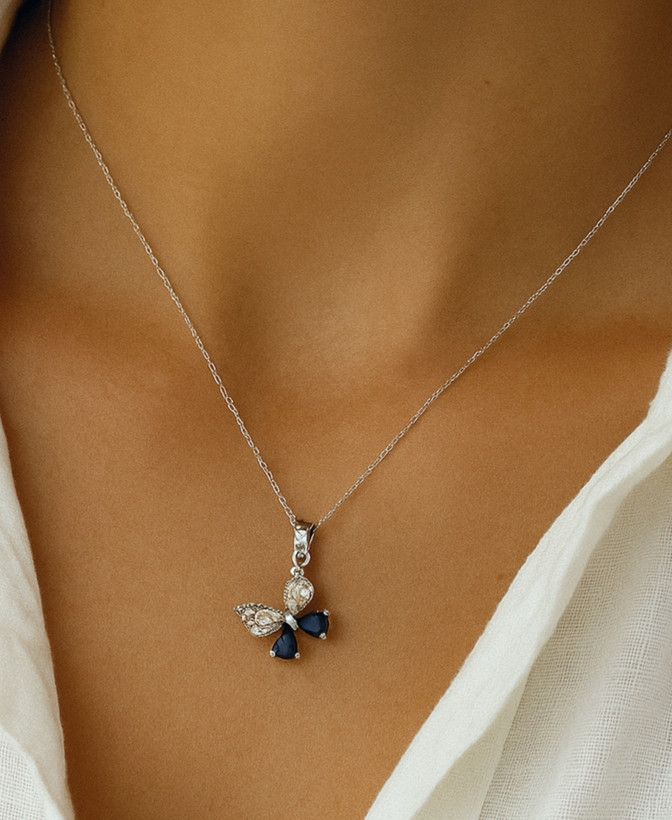 آویز پروانهای با برش کاری دقیق که جلوه خاصی به گردنبند میدهد